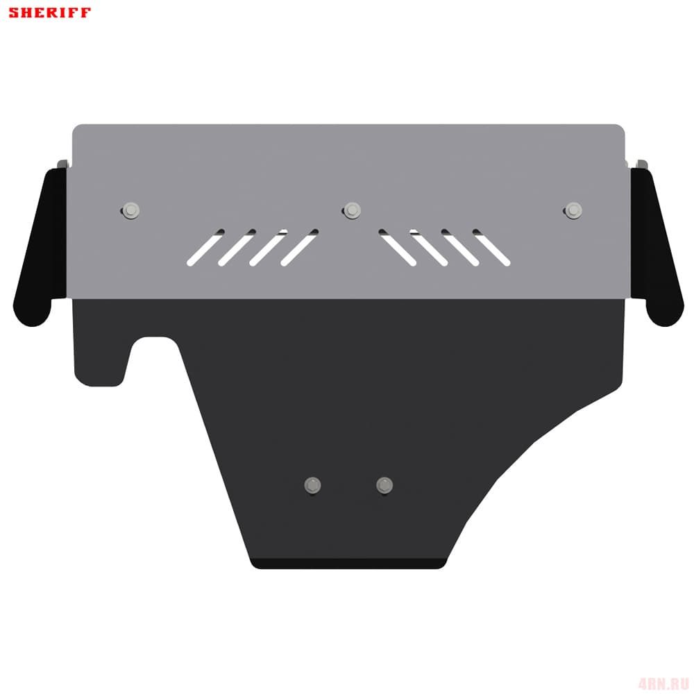 Защита картера Sheriff нужна для сохранности узлов и агрегатов, находящихся на днище авто. Она надежно защитит двигательный отсек вашей машины от повреждений. Также она защищает моторный отсек от влаги, грязи, и предусматривает наличие металлических крыльев, которые выполняют функцию пыльника.