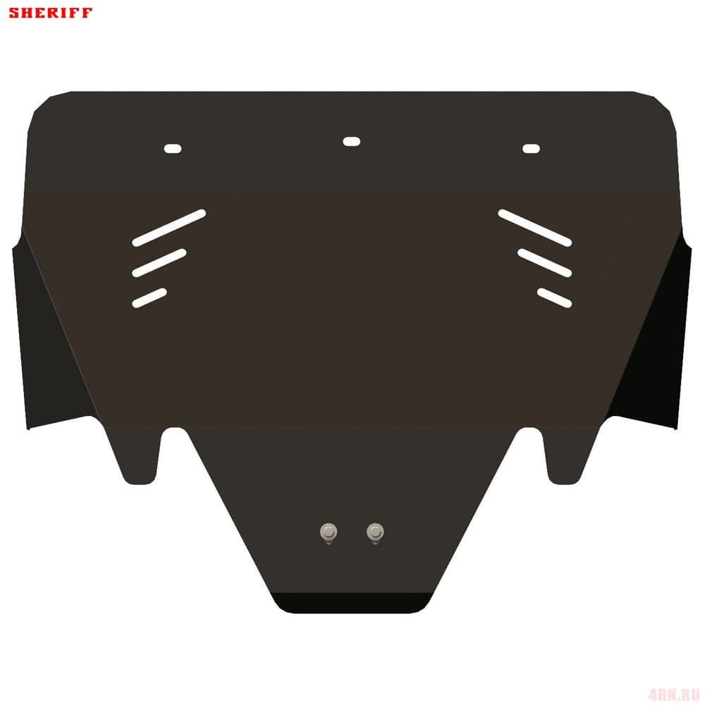 Защита картера Sheriff нужна для сохранности узлов и агрегатов, находящихся на днище авто. Она надежно защитит двигательный отсек вашей машины от повреждений. Также она защищает моторный отсек от влаги, грязи, и предусматривает наличие металлических крыльев, которые выполняют функцию пыльника.