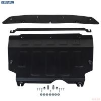 Порошковое окрашивание гарантирует долгий срок службы. А глубокий штамп увеличивает жесткость до 2,5 раз. Также имеется утопленный крепеж для предотвращения срывов. Качественная покраска защиты картера выдерживает 720 часов соляного тумана. Толщина изделия составляет 2-6 мм. Подштамповка в местах крепления предохраняет крепеж от срезания. Деталь спроектирована индивидуально для вашего автомобиля, что позволяет устанавливать ее в штатные места без доработки кузова за 10 мин.