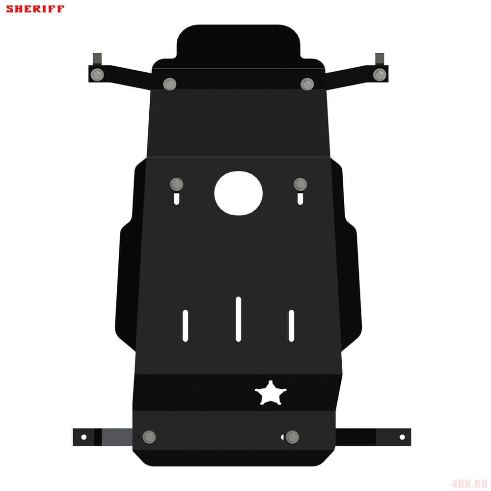 Защита картера Sheriff нужна для сохранности узлов и агрегатов, находящихся на днище авто. Она надежно защитит двигательный отсек вашей машины от повреждений. Также она защищает моторный отсек от влаги, грязи, и предусматривает наличие металлических крыльев, которые выполняют функцию пыльника.