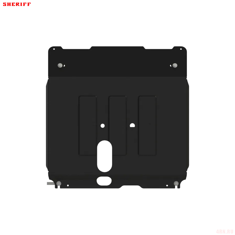 Защита картера Sheriff нужна для сохранности узлов и агрегатов, находящихся на днище авто. Она надежно защитит двигательный отсек вашей машины от повреждений. Также она защищает моторный отсек от влаги, грязи, и предусматривает наличие металлических крыльев, которые выполняют функцию пыльника.