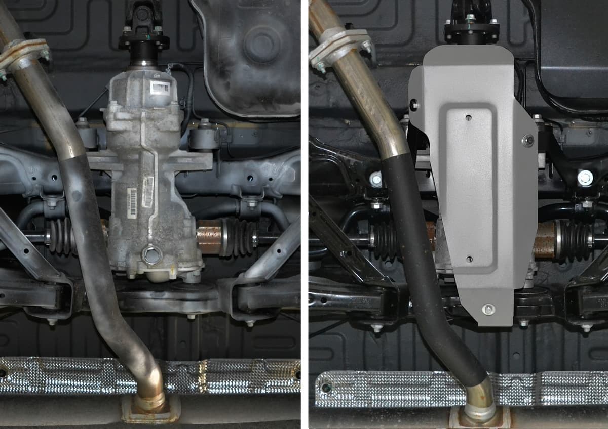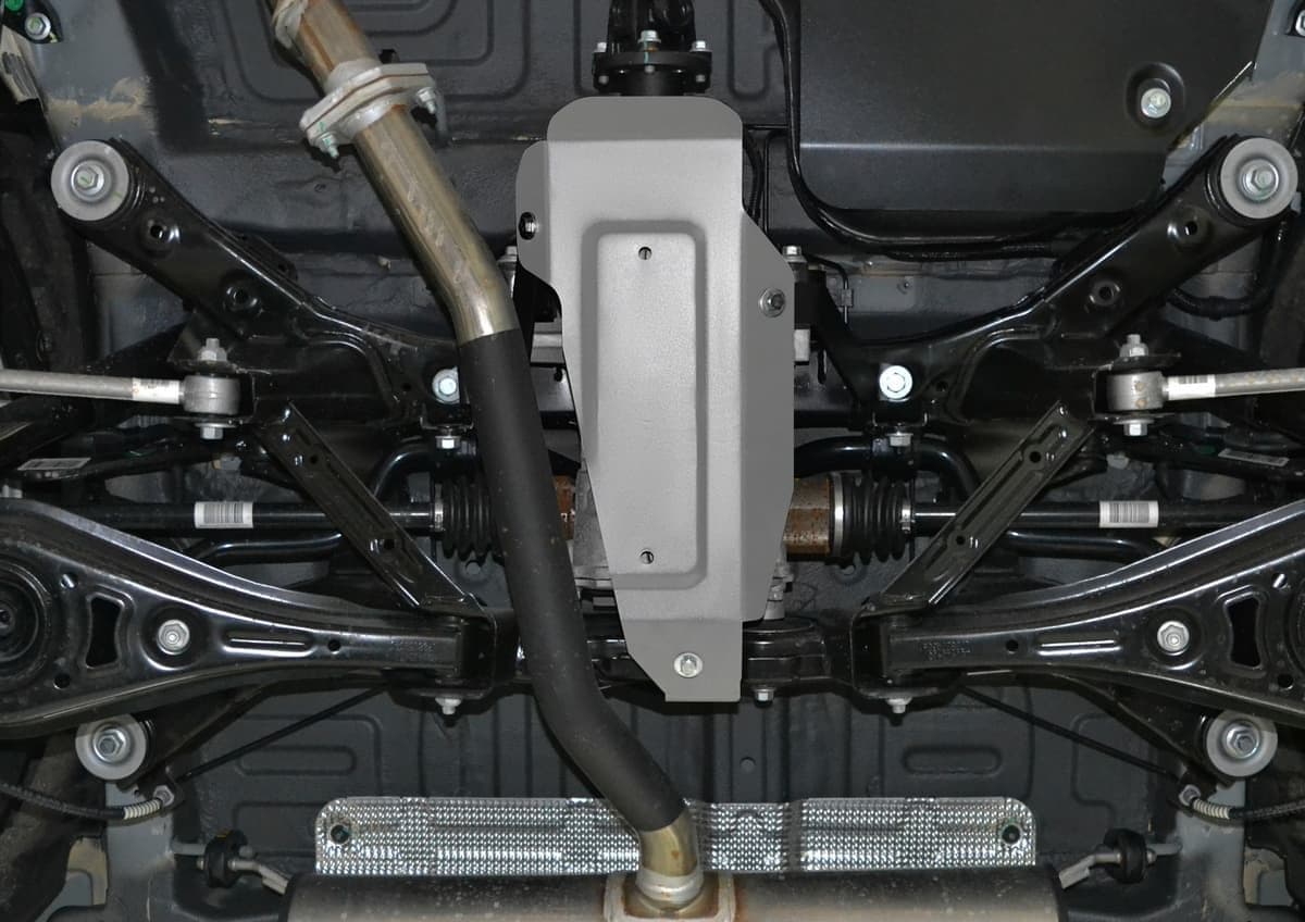 Стойкое порошковое окрашивание позволяет сохранить внешний вид, защитит от царапин, предотвратит коррозию. Также имеется утопленный крепеж для предотвращения срывов. Крепеж не образует с алюминием гальваническую пару. Защита спроектирована индивидуально для автомобиля, что позволяет устанавливать ее в штатные места без доработки кузова за 10 мин.