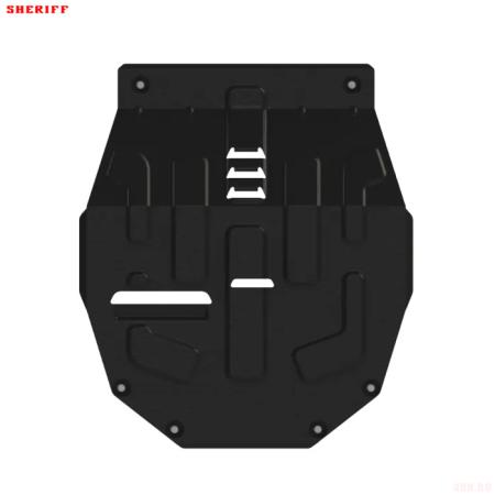 Защита картера Sheriff нужна для сохранности узлов и агрегатов, находящихся на днище авто. Она надежно защитит двигательный отсек вашей машины от повреждений. Также она защищает моторный отсек от влаги, грязи, и предусматривает наличие металлических крыльев, которые выполняют функцию пыльника.