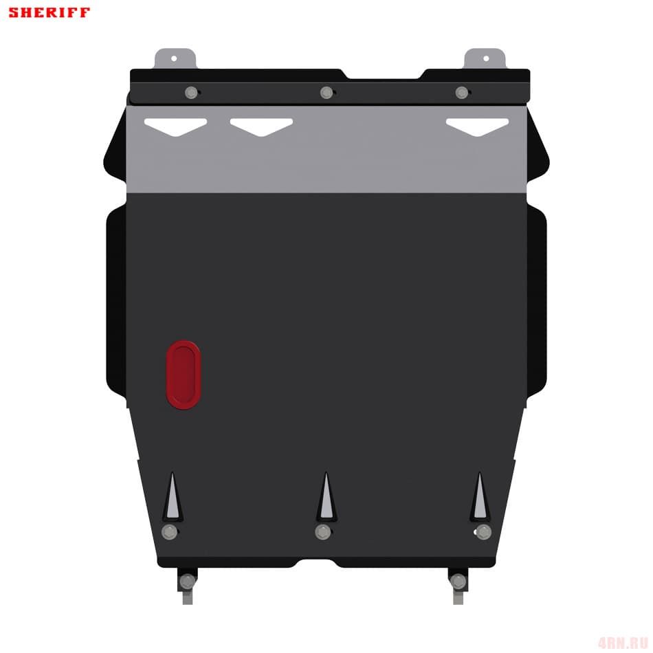 Защита картера Sheriff нужна для сохранности узлов и агрегатов, находящихся на днище авто. Она надежно защитит двигательный отсек вашей машины от повреждений. Также она защищает моторный отсек от влаги, грязи, и предусматривает наличие металлических крыльев, которые выполняют функцию пыльника.