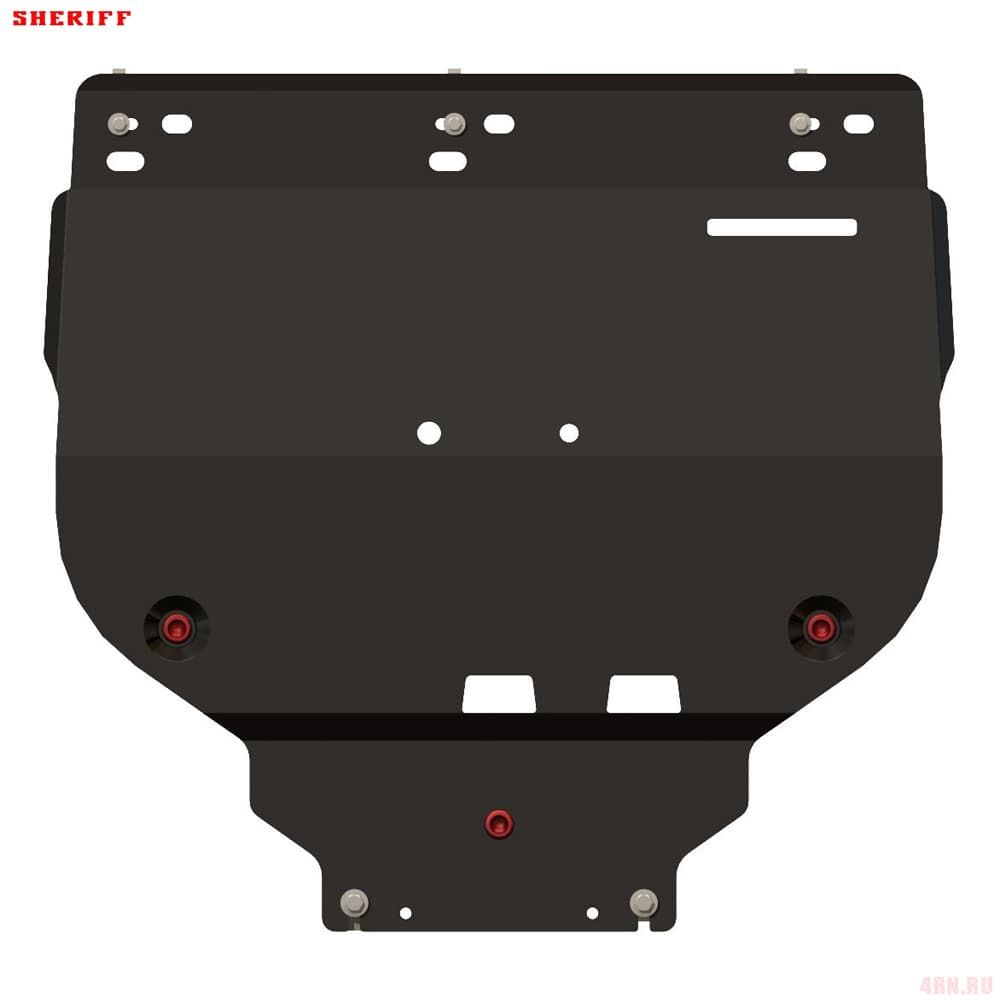 Защита картера Sheriff нужна для сохранности узлов и агрегатов, находящихся на днище авто. Она надежно защитит двигательный отсек вашей машины от повреждений. Также она защищает моторный отсек от влаги, грязи, и предусматривает наличие металлических крыльев, которые выполняют функцию пыльника.
