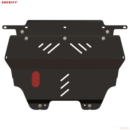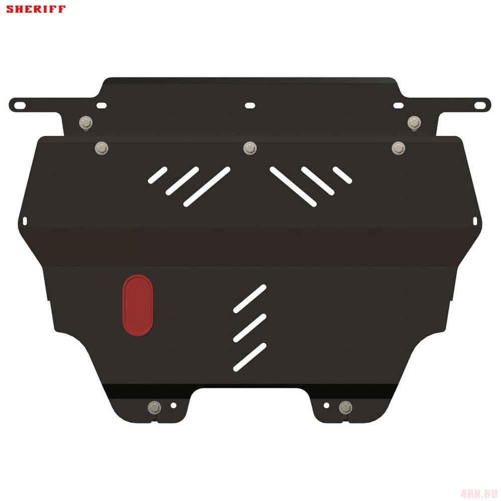 Защита картера Sheriff нужна для сохранности узлов и агрегатов, находящихся на днище авто. Она надежно защитит двигательный отсек вашей машины от повреждений. Также она защищает моторный отсек от влаги, грязи, и предусматривает наличие металлических крыльев, которые выполняют функцию пыльника.