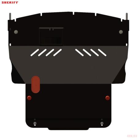 Защита картера Sheriff нужна для сохранности узлов и агрегатов, находящихся на днище авто. Она надежно защитит двигательный отсек вашей машины от повреждений. Также она защищает моторный отсек от влаги, грязи, и предусматривает наличие металлических крыльев, которые выполняют функцию пыльника.
