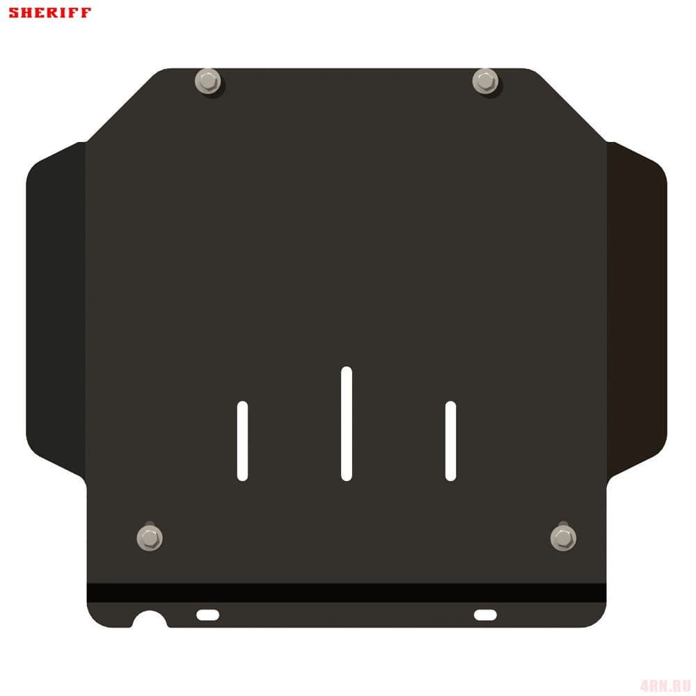 Защита картера Sheriff нужна для сохранности узлов и агрегатов, находящихся на днище авто. Она надежно защитит двигательный отсек вашей машины от повреждений. Также она защищает моторный отсек от влаги, грязи, и предусматривает наличие металлических крыльев, которые выполняют функцию пыльника.