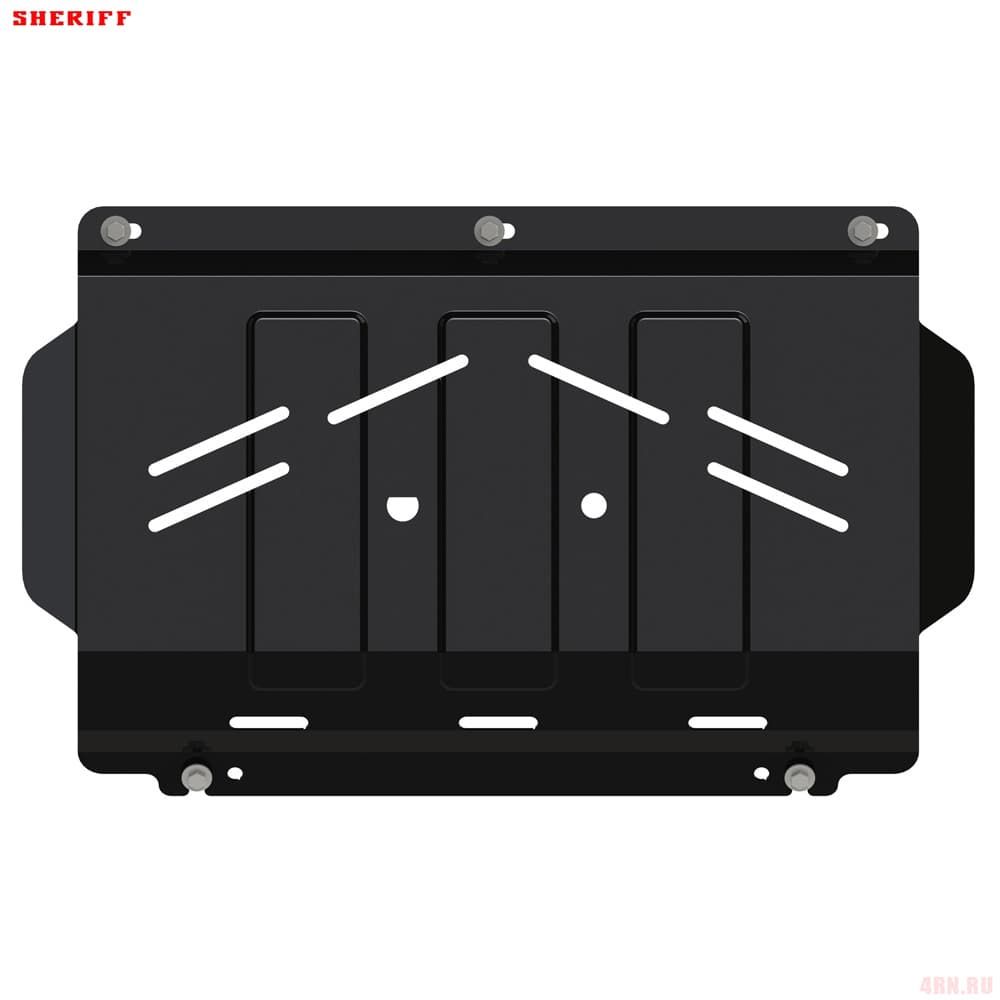 Защита картера Sheriff нужна для сохранности узлов и агрегатов, находящихся на днище авто. Она надежно защитит двигательный отсек вашей машины от повреждений. Также она защищает моторный отсек от влаги, грязи, и предусматривает наличие металлических крыльев, которые выполняют функцию пыльника.