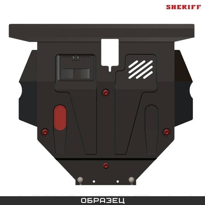 Защита картера Sheriff нужна для сохранности узлов и агрегатов, находящихся на днище авто. Она надежно защитит двигательный отсек вашей машины от повреждений. Также она защищает моторный отсек от влаги, грязи, и предусматривает наличие металлических крыльев, которые выполняют функцию пыльника.