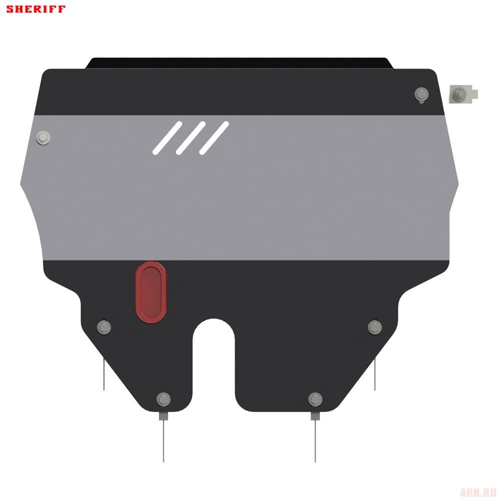 Защита картера Sheriff нужна для сохранности узлов и агрегатов, находящихся на днище авто. Она надежно защитит двигательный отсек вашей машины от повреждений. Также она защищает моторный отсек от влаги, грязи, и предусматривает наличие металлических крыльев, которые выполняют функцию пыльника.