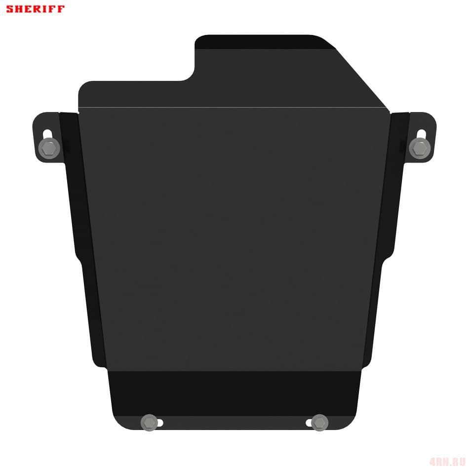 Защита картера Sheriff нужна для сохранности узлов и агрегатов, находящихся на днище авто. Она надежно защитит двигательный отсек вашей машины от повреждений. Также она защищает моторный отсек от влаги, грязи, и предусматривает наличие металлических крыльев, которые выполняют функцию пыльника.