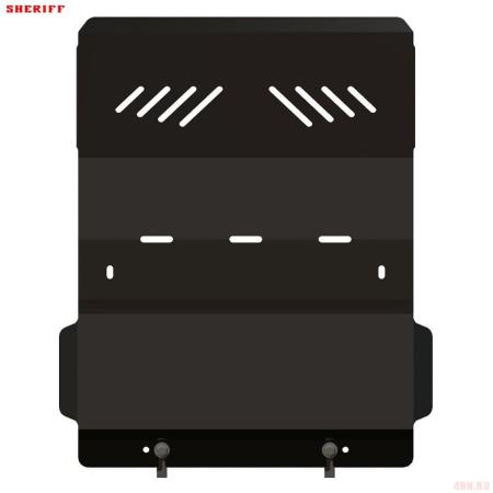 Защита картера Sheriff нужна для сохранности узлов и агрегатов, находящихся на днище авто. Она надежно защитит двигательный отсек вашей машины от повреждений. Также она защищает моторный отсек от влаги, грязи, и предусматривает наличие металлических крыльев, которые выполняют функцию пыльника.