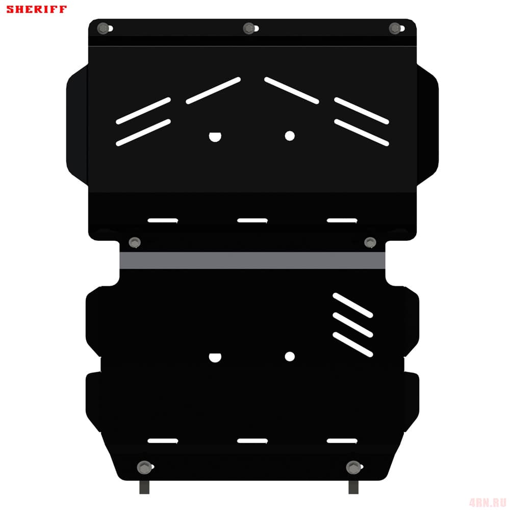 Защита картера Sheriff нужна для сохранности узлов и агрегатов, находящихся на днище авто. Она надежно защитит двигательный отсек вашей машины от повреждений. Также она защищает моторный отсек от влаги, грязи, и предусматривает наличие металлических крыльев, которые выполняют функцию пыльника.