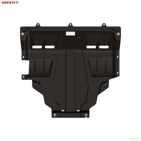 Защита картера Sheriff нужна для сохранности узлов и агрегатов, находящихся на днище авто. Она надежно защитит двигательный отсек вашей машины от повреждений. Также она защищает моторный отсек от влаги, грязи, и предусматривает наличие металлических крыльев, которые выполняют функцию пыльника.
