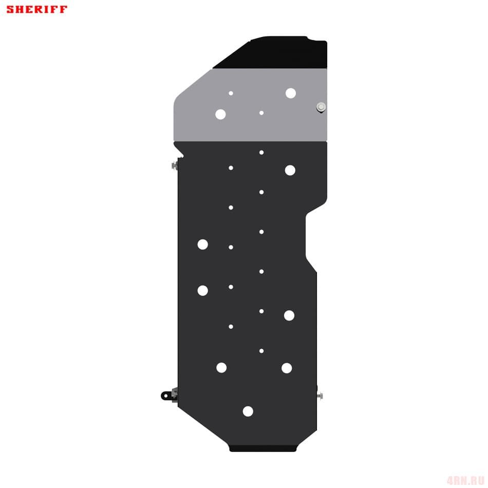 Защита картера Sheriff нужна для сохранности узлов и агрегатов, находящихся на днище авто. Она надежно защитит двигательный отсек вашей машины от повреждений. Также она защищает моторный отсек от влаги, грязи, и предусматривает наличие металлических крыльев, которые выполняют функцию пыльника.