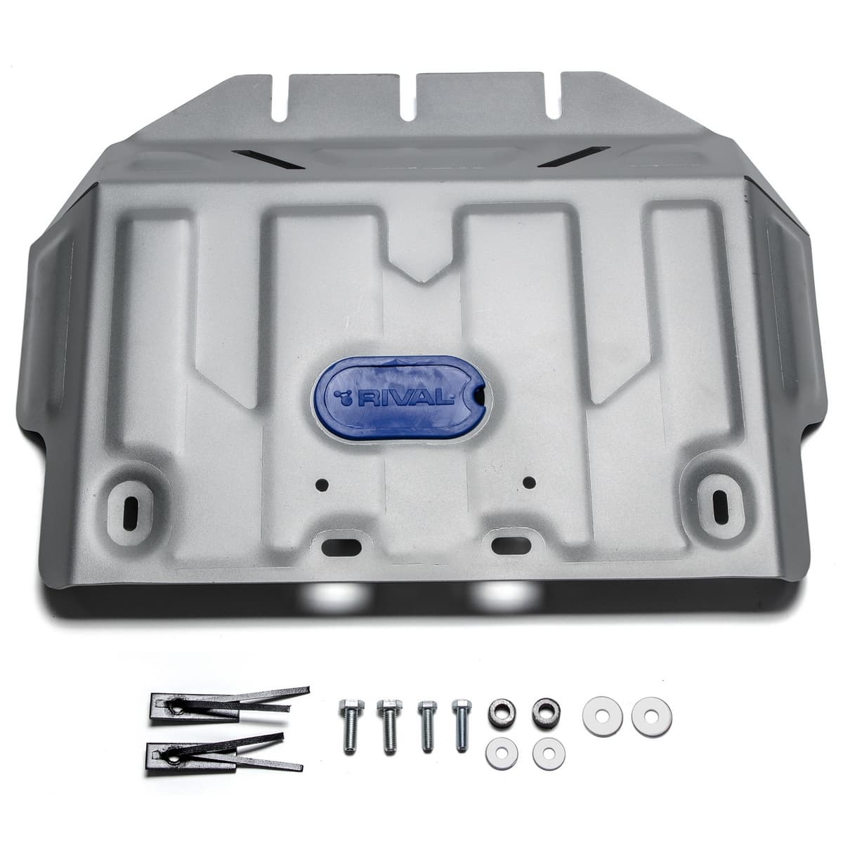 Защита Rival произведена из высококачественного алюминия. Она надежно предохраняет днище вашего автомобиля от различных повреждений при наезде на бордюры, выступающие канализационные люки, кромки поврежденного асфальта или при ремонте дорог.