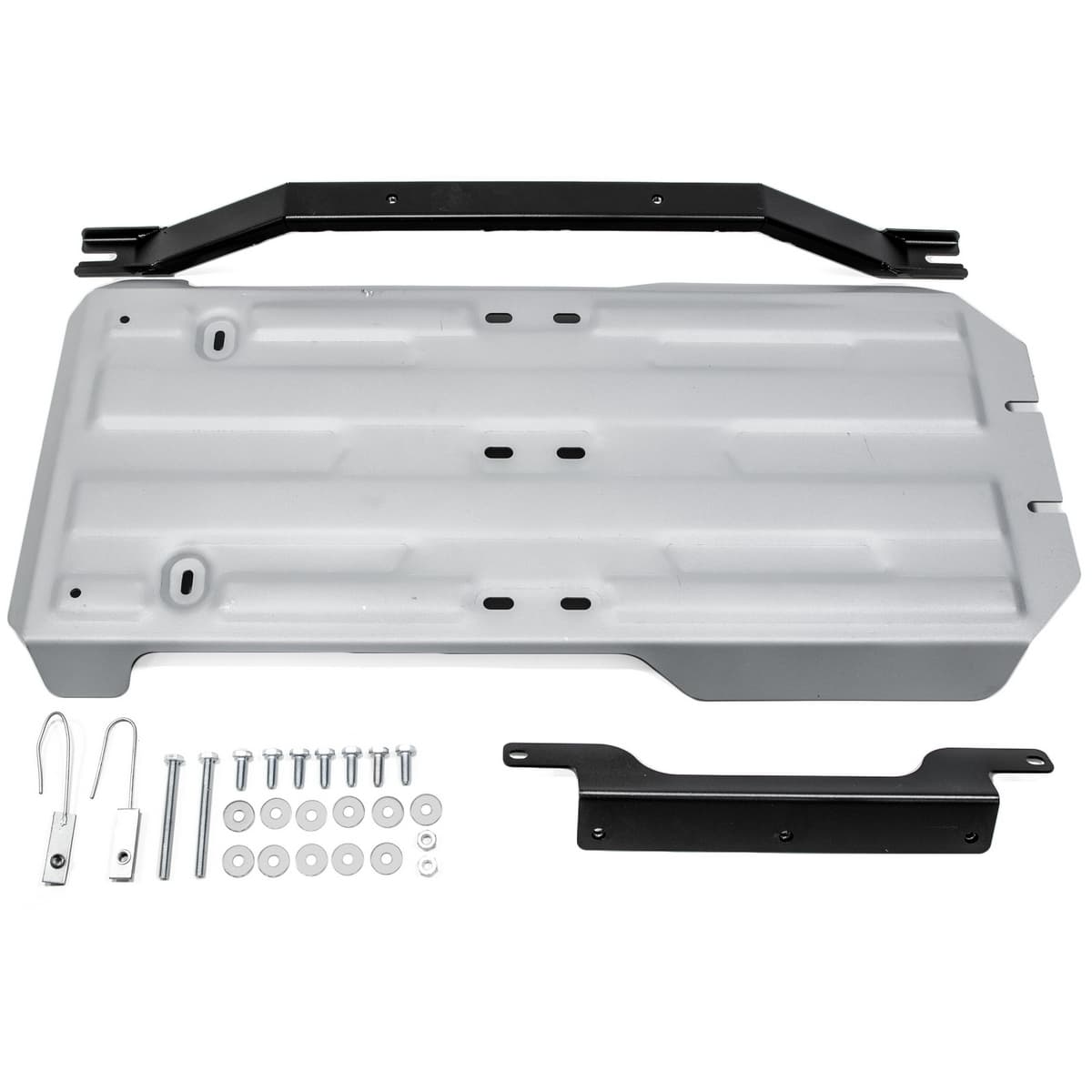 Стойкое порошковое окрашивание позволяет сохранить внешний вид, защитит от царапин, предотвратит коррозию. Также имеется утопленный крепеж для предотвращения срывов. Крепеж не образует с алюминием гальваническую пару. Защита спроектирована индивидуально для автомобиля, что позволяет устанавливать ее в штатные места без доработки кузова за 10 мин.