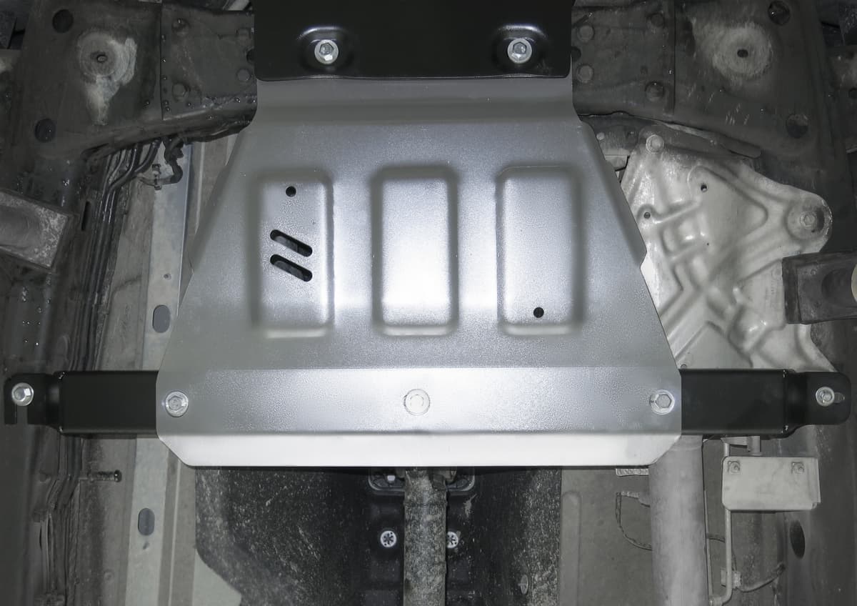 Стойкое порошковое окрашивание позволяет сохранить внешний вид, защитит от царапин, предотвратит коррозию. Также имеется утопленный крепеж для предотвращения срывов. Крепеж не образует с алюминием гальваническую пару. Защита спроектирована индивидуально для автомобиля, что позволяет устанавливать ее в штатные места без доработки кузова за 10 мин.