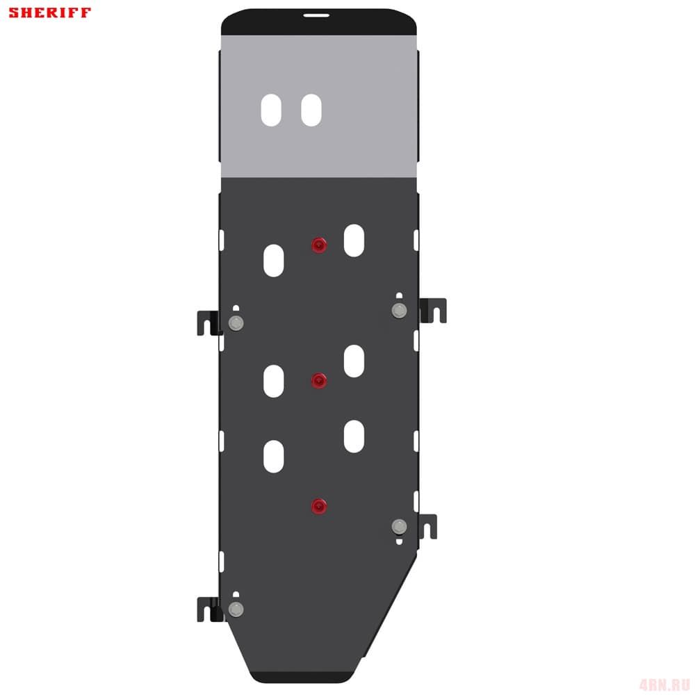 Защита картера Sheriff нужна для сохранности узлов и агрегатов, находящихся на днище авто. Она надежно защитит двигательный отсек вашей машины от повреждений. Также она защищает моторный отсек от влаги, грязи, и предусматривает наличие металлических крыльев, которые выполняют функцию пыльника.