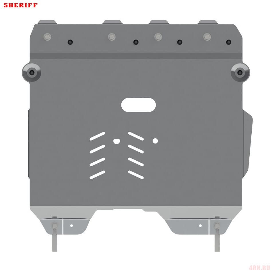 Защита картера Sheriff нужна для сохранности узлов и агрегатов, находящихся на днище авто. Она надежно защитит двигательный отсек вашего автомобиля от повреждений. Также она защищает моторный отсек от влаги и грязи, и предусматривает наличие металлических крыльев, которые выполняют функцию пыльника.