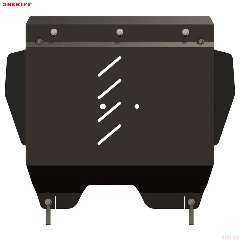 Защита картера Sheriff нужна для сохранности узлов и агрегатов, находящихся на днище авто. Она надежно защитит двигательный отсек вашей машины от повреждений. Также она защищает моторный отсек от влаги, грязи, и предусматривает наличие металлических крыльев, которые выполняют функцию пыльника.