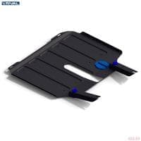 Порошковое окрашивание гарантирует долгий срок службы. А глубокий штамп увеличивает жесткость до 2,5 раз. Также имеется утопленный крепеж для предотвращения срывов. Качественная покраска защиты картера выдерживает 720 часов соляного тумана. Толщина изделия составляет 2-6 мм. Подштамповка в местах крепления предохраняет крепеж от срезания. Деталь спроектирована индивидуально для вашего автомобиля, что позволяет устанавливать ее в штатные места без доработки кузова за 10 мин.