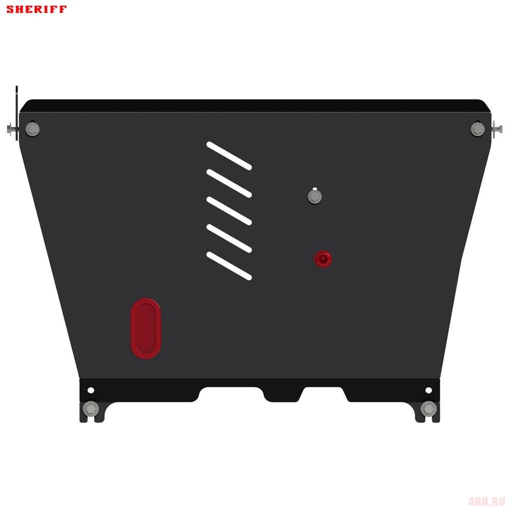 Защита картера Sheriff нужна для сохранности узлов и агрегатов, находящихся на днище авто. Она надежно защитит двигательный отсек вашей машины от повреждений. Также она защищает моторный отсек от влаги, грязи, и предусматривает наличие металлических крыльев, которые выполняют функцию пыльника.
