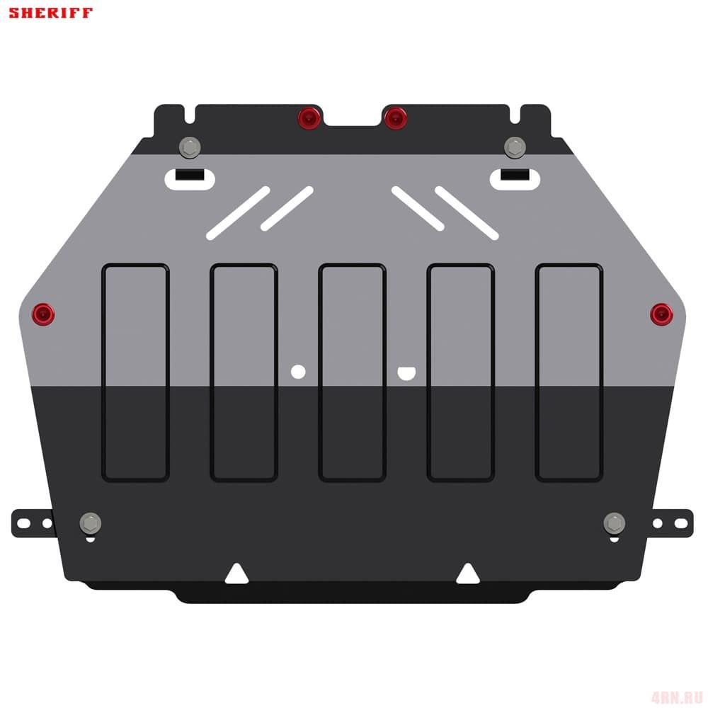 Защита картера Sheriff нужна для сохранности узлов и агрегатов, находящихся на днище авто. Она надежно защитит двигательный отсек вашей машины от повреждений. Также она защищает моторный отсек от влаги, грязи, и предусматривает наличие металлических крыльев, которые выполняют функцию пыльника.