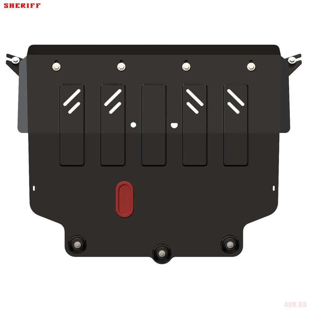 Защита картера Sheriff нужна для сохранности узлов и агрегатов, находящихся на днище авто. Она надежно защитит двигательный отсек вашей машины от повреждений. Также она защищает моторный отсек от влаги, грязи, и предусматривает наличие металлических крыльев, которые выполняют функцию пыльника.