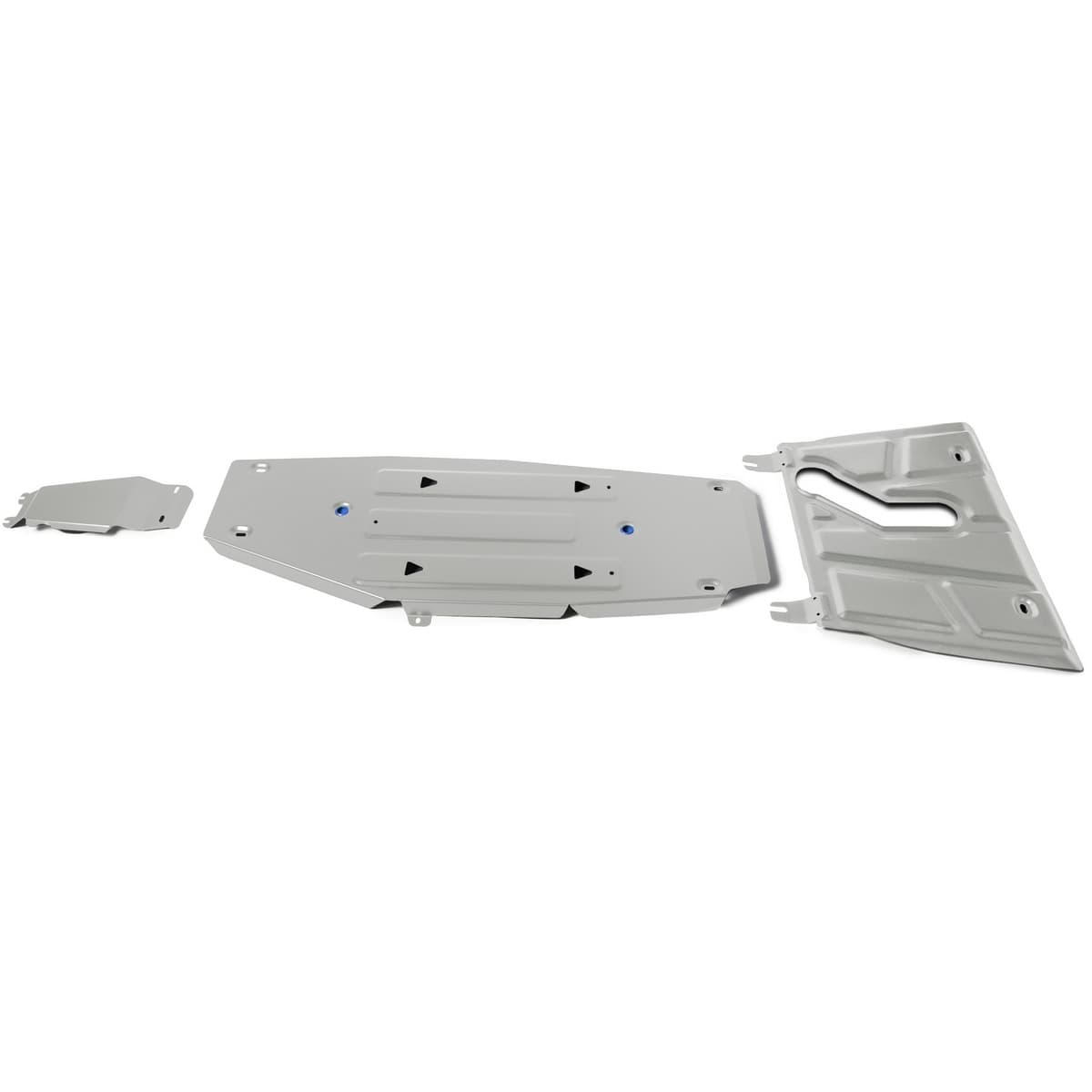 Стойкое порошковое окрашивание позволяет сохранить внешний вид, защитит от царапин, предотвратит коррозию. Также имеется утопленный крепеж для предотвращения срывов. Крепеж не образует с алюминием гальваническую пару. Защита спроектирована индивидуально для автомобиля, что позволяет устанавливать ее в штатные места без доработки кузова за 10 мин.