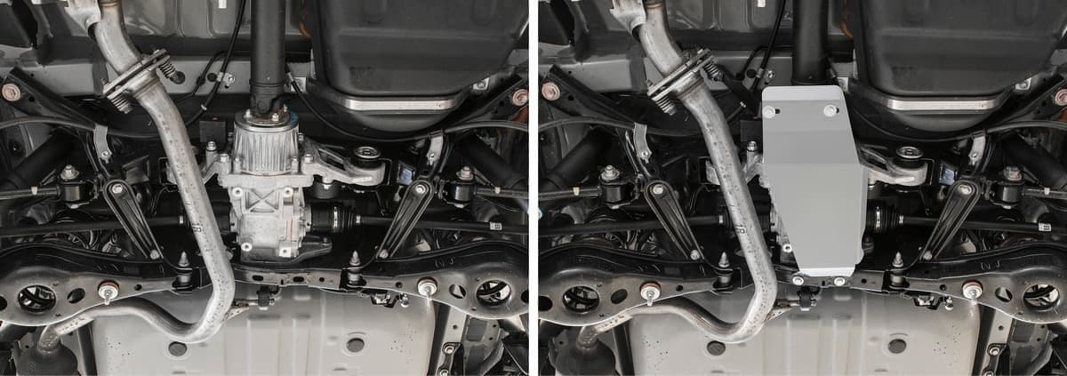 Стойкое порошковое окрашивание позволяет сохранить внешний вид, защитит от царапин, предотвратит коррозию. Также имеется утопленный крепеж для предотвращения срывов. Крепеж не образует с алюминием гальваническую пару. Защита спроектирована индивидуально для автомобиля, что позволяет устанавливать ее в штатные места без доработки кузова за 10 мин.