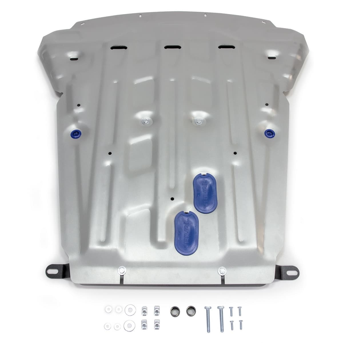Защита Rival произведена из высококачественного алюминия. Она надежно предохраняет днище вашего автомобиля от различных повреждений при наезде на бордюры, выступающие канализационные люки, кромки поврежденного асфальта или при ремонте дорог.
