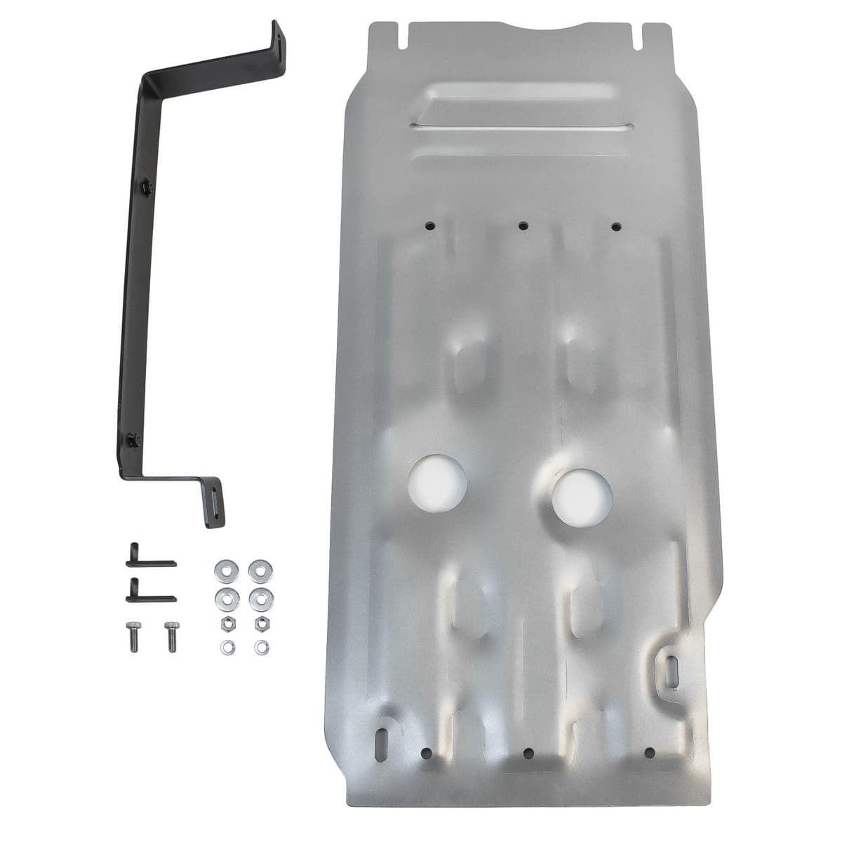 Стойкое порошковое окрашивание позволяет сохранить внешний вид, защитит от царапин, предотвратит коррозию. Также имеется утопленный крепеж для предотвращения срывов. Крепеж не образует с алюминием гальваническую пару. Защита спроектирована индивидуально для автомобиля, что позволяет устанавливать ее в штатные места без доработки кузова за 10 мин.