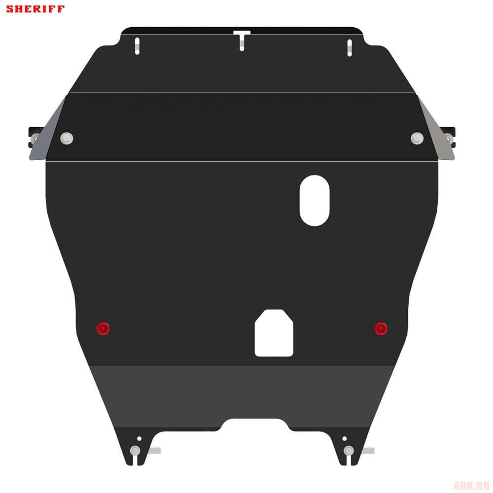 Защита картера Sheriff нужна для сохранности узлов и агрегатов, находящихся на днище авто. Она надежно защитит двигательный отсек вашей машины от повреждений. Также она защищает моторный отсек от влаги, грязи, и предусматривает наличие металлических крыльев, которые выполняют функцию пыльника.