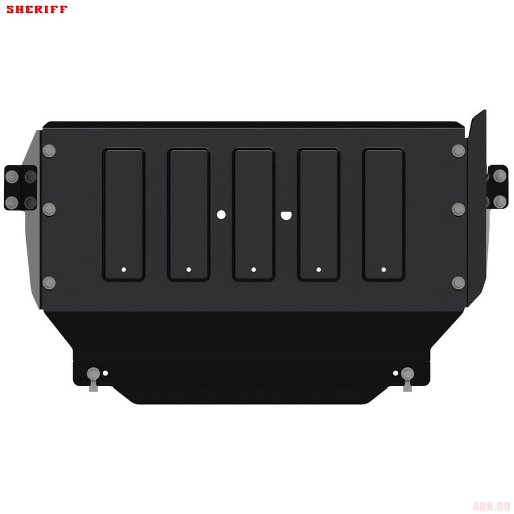 Защита картера Sheriff нужна для сохранности узлов и агрегатов, находящихся на днище авто. Она надежно защитит двигательный отсек вашей машины от повреждений. Также она защищает моторный отсек от влаги, грязи, и предусматривает наличие металлических крыльев, которые выполняют функцию пыльника.