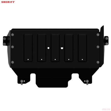 Защита картера Sheriff нужна для сохранности узлов и агрегатов, находящихся на днище авто. Она надежно защитит двигательный отсек вашей машины от повреждений. Также она защищает моторный отсек от влаги, грязи, и предусматривает наличие металлических крыльев, которые выполняют функцию пыльника.
