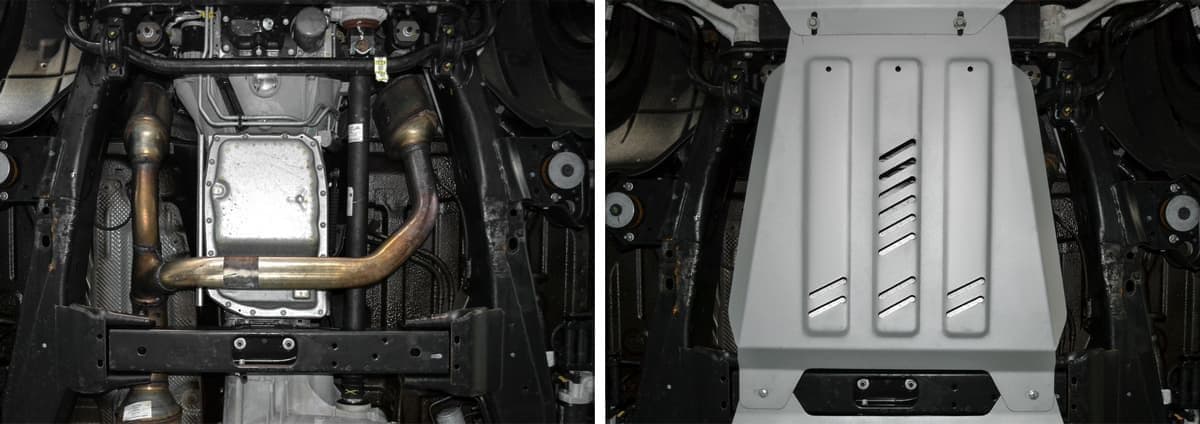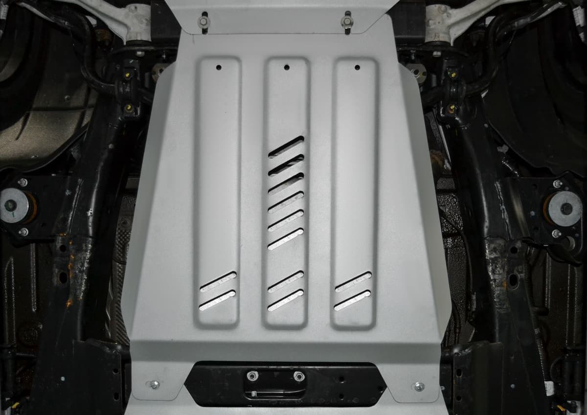 Стойкое порошковое окрашивание позволяет сохранить внешний вид, защитит от царапин, предотвратит коррозию. Также имеется утопленный крепеж для предотвращения срывов. Крепеж не образует с алюминием гальваническую пару. Защита спроектирована индивидуально для автомобиля, что позволяет устанавливать ее в штатные места без доработки кузова за 10 мин.