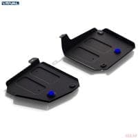 Порошковое окрашивание гарантирует долгий срок службы. А глубокий штамп увеличивает жесткость до 2,5 раз. Также имеется утопленный крепеж для предотвращения срывов. Качественная покраска защиты картера выдерживает 720 часов соляного тумана. Толщина изделия составляет 2-6 мм. Подштамповка в местах крепления предохраняет крепеж от срезания. Деталь спроектирована индивидуально для вашего автомобиля, что позволяет устанавливать ее в штатные места без доработки кузова за 10 мин.