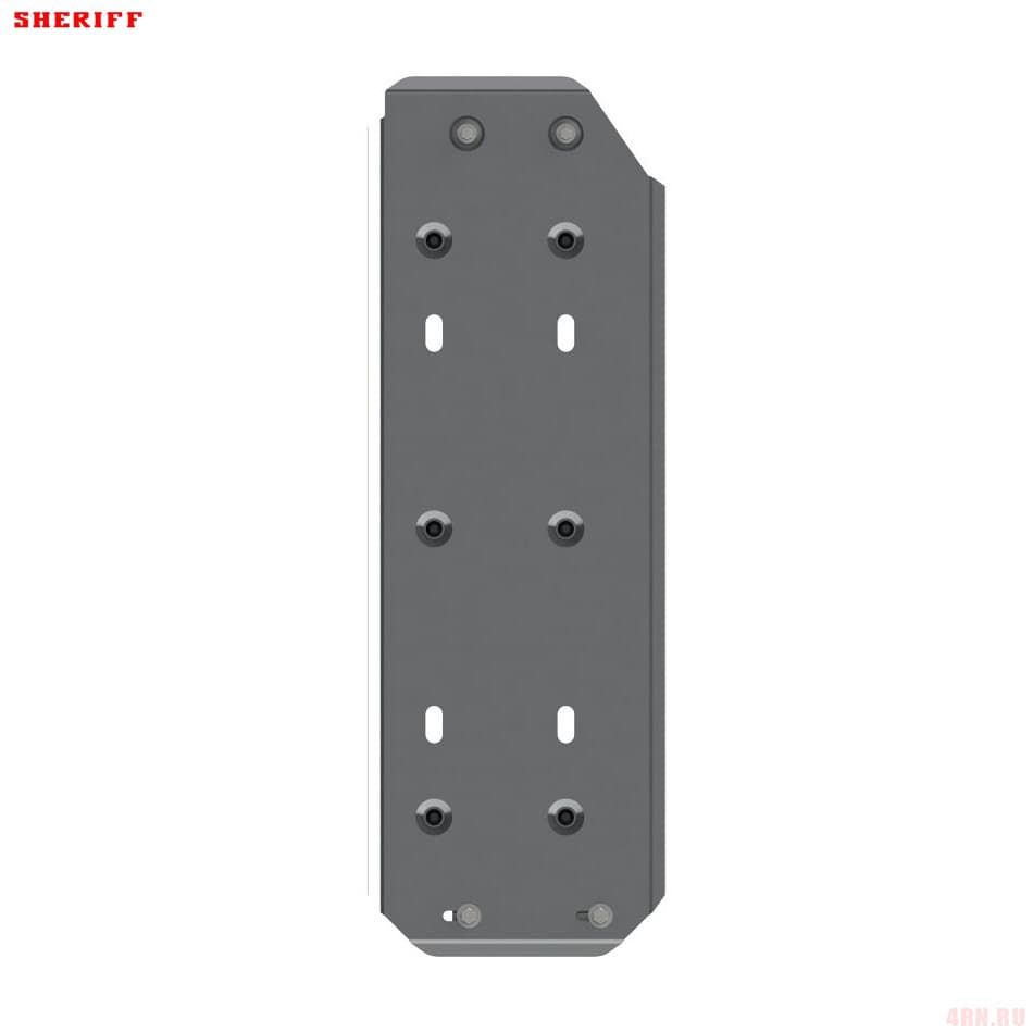 Защита картера Sheriff нужна для сохранности узлов и агрегатов, находящихся на днище авто. Она надежно защитит двигательный отсек вашего автомобиля от повреждений. Также она защищает моторный отсек от влаги и грязи, и предусматривает наличие металлических крыльев, которые выполняют функцию пыльника.