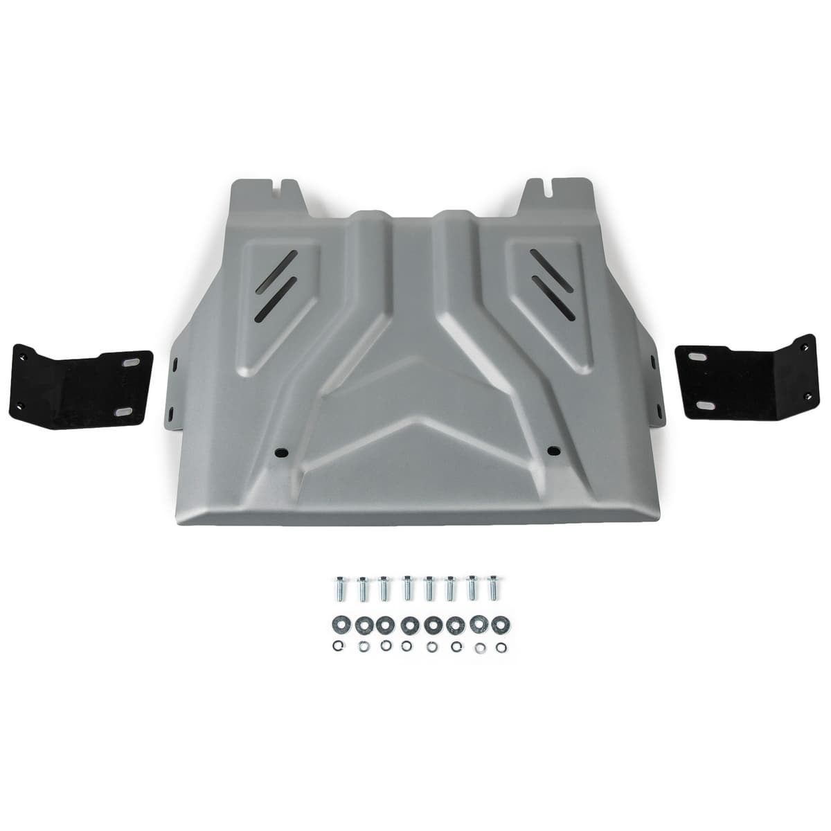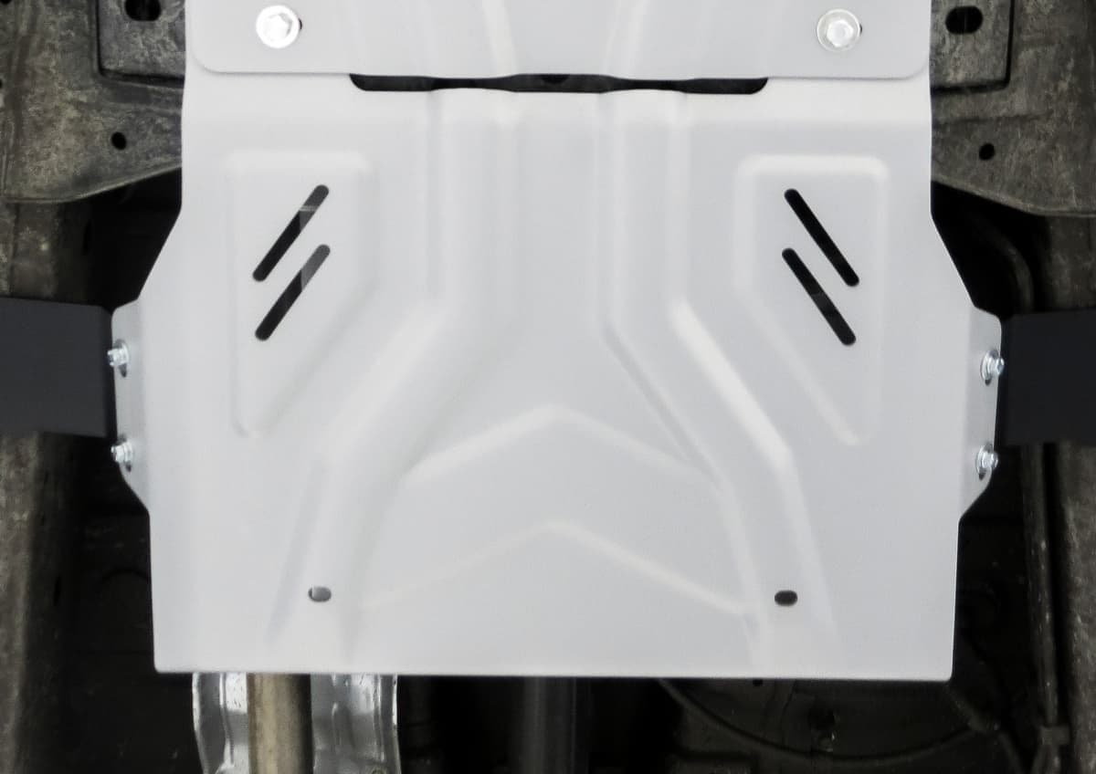 Стойкое порошковое окрашивание позволяет сохранить внешний вид, защитит от царапин, предотвратит коррозию. Также имеется утопленный крепеж для предотвращения срывов. Крепеж не образует с алюминием гальваническую пару. Защита спроектирована индивидуально для автомобиля, что позволяет устанавливать ее в штатные места без доработки кузова за 10 мин.
