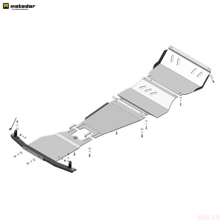 Алюминиевая защита двигателя, кпп, радиатора и раздаточной коробки с крепежом в комплекте, артикул 31323 от российского производителя Мотодор. Разработана специально для автомобиля Mitsubishi L200 2015-2021.