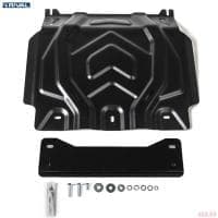 Порошковое окрашивание гарантирует долгий срок службы. А глубокий штамп увеличивает жесткость до 2,5 раз. Также имеется утопленный крепеж для предотвращения срывов. Качественная покраска защиты картера выдерживает 720 часов соляного тумана. Толщина изделия составляет 2-6 мм. Подштамповка в местах крепления предохраняет крепеж от срезания. Деталь спроектирована индивидуально для вашего автомобиля, что позволяет устанавливать ее в штатные места без доработки кузова за 10 мин.