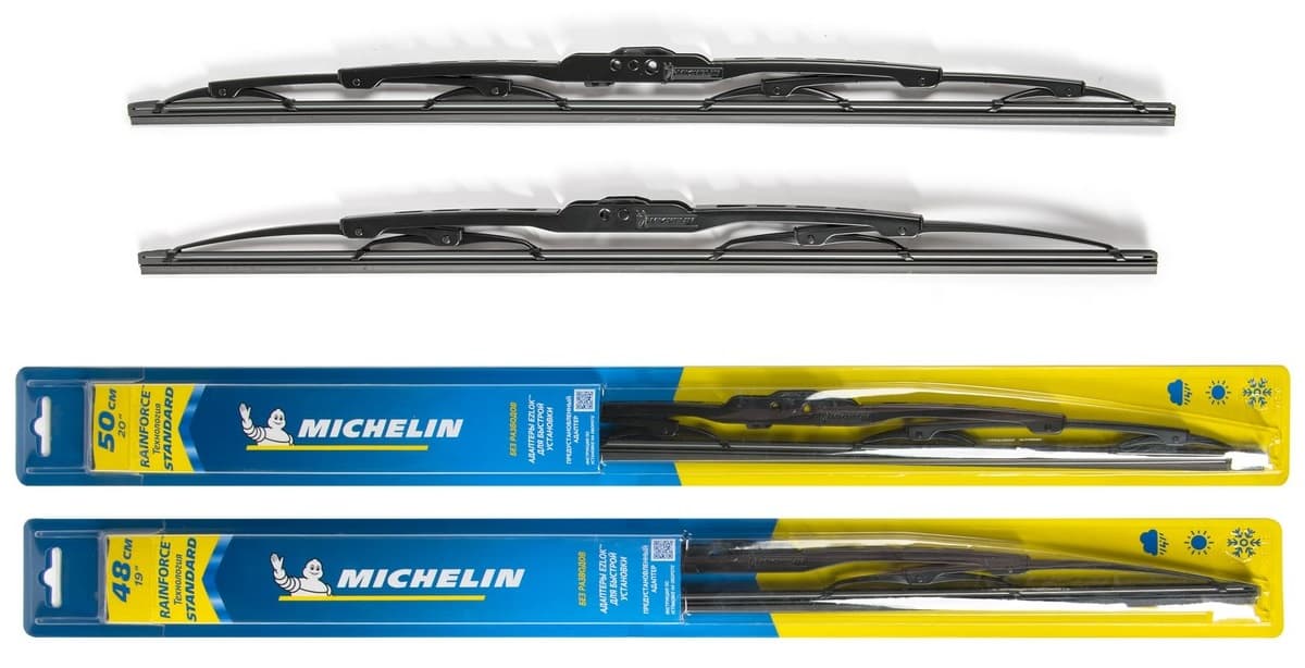 Щетка от производителя MICHELIN, сезон эксплуатации - всесезонные, тип щеток - каркасные, расположение - лобовое стекло, комплект - 2 щетки (длина: 500 и 480 мм), крепление - крюк, штыковой замок, штырь. Щетки MICHELIN долговечны в использовании и обеспечивают качественное очищение стекла.
